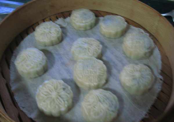 蒸花餅:先將麥粉和面稍嫩點備用,然後將豆沙餡做成等量圓形狀備用。將和好面等量均勻分成大小一樣的擠子,分別包進豆沙餡收口,然後放入模具內壓一下成形。鍋內放入水煮開,放上餅隔水蒸15分鐘即可。