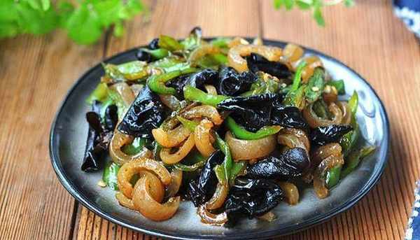 肉皮含有豐富的膠原蛋白,所以吃起來口感有點膩,肉皮跟木耳是絕配呢,黑木耳被營養學傢譽為“素中之葷”和“素中之王”,每100克黑木耳中含鐵185毫克,它比綠葉蔬菜中含鐵量最高的菠菜高出20倍,比動物性食品中含鐵量最高的豬肝還高出約7倍,是各種葷素食品中含鐵量最多的。不僅如此,木耳還有有排毒、烏發、通腸潤便的功效,跟肉皮一起炒,能中和肉皮的油脂,口感爽脆清爽。