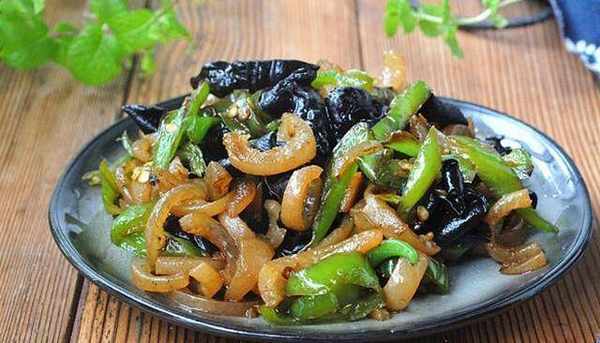 青椒木耳炒肉皮,最適合秋天的下飯菜,現在秋天瞭,皮膚幹幹的,多吃這道菜會對皮膚有很大的好處。