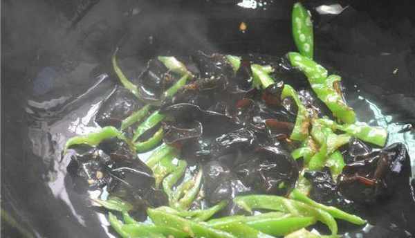 青椒和木耳都是去除油膩的搭配,這三個食材,一個都不可缺少,個人覺得,肉皮一定要香辣口味的才好吃,不放辣椒太膩瞭。