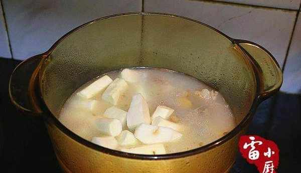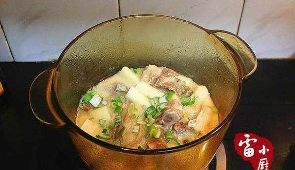4、燉至羊肉可以用筷子戳穿時加入山藥,食鹽一起再燉個20分鐘,山藥能用筷子戳穿就可以瞭。