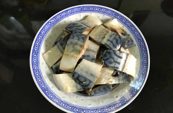 2、青花魚清洗幹凈,切成小塊,加少許鹽,胡椒粉醃制10分鐘。