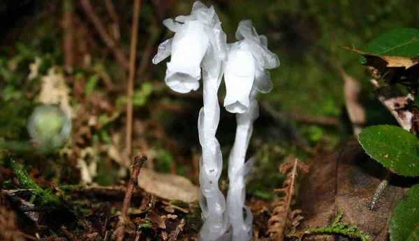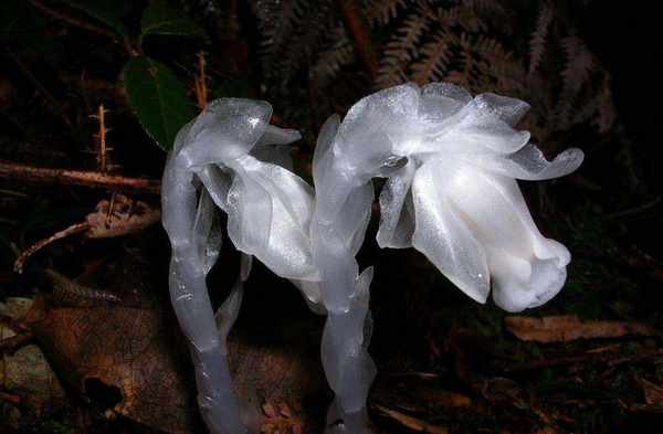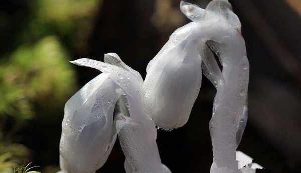 這神秘的植物,其實是水晶蘭,有“幽靈草”“夢蘭花”“冥界之花”等別稱。物如其名,晶瑩剔透如水晶一般,屬於鹿蹄草科多年生的腐生植物。這種植物的奇特之處在於它沒有葉綠素,所以也無法像其他植物一樣進行光合作用。但它自有一套生存之道,它靠吸收腐葉的營養來獲得養分,維系生命,也是因此,水晶蘭才會被稱為“死亡之花”。