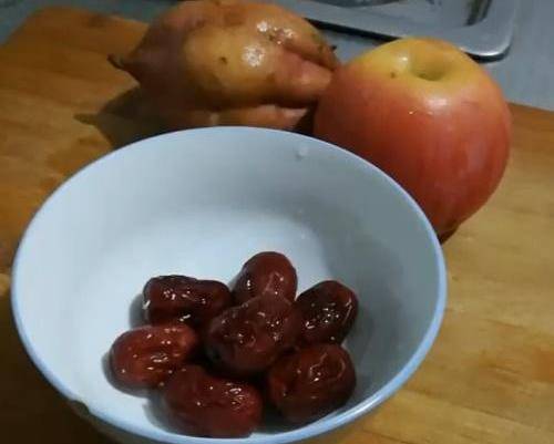 準備食材:蘋果1個、紅薯1個、紅棗適量、紅糖適量。
