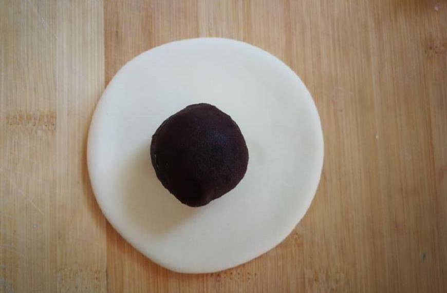 3,面團搟成皮,包上你喜歡的餡,然後像捏包子一樣,收口收緊些。