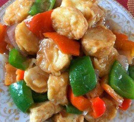 這道美味的紅燒日本豆腐就做好瞭,色澤鮮艷,日本豆腐口感鮮香、滑嫩,再搭配彩椒一起炒,美味可口,營養豐富。
