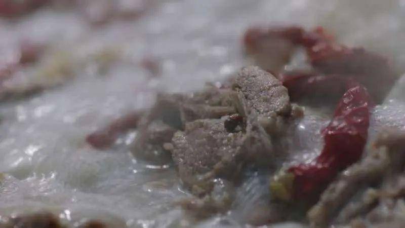 再佐以零星羊雜、蓮花菜,和事先炸好的土豆絲、豆腐條、蔥花和香菜,最後再放上羊油辣子,一碗下肚立刻活力滿滿。