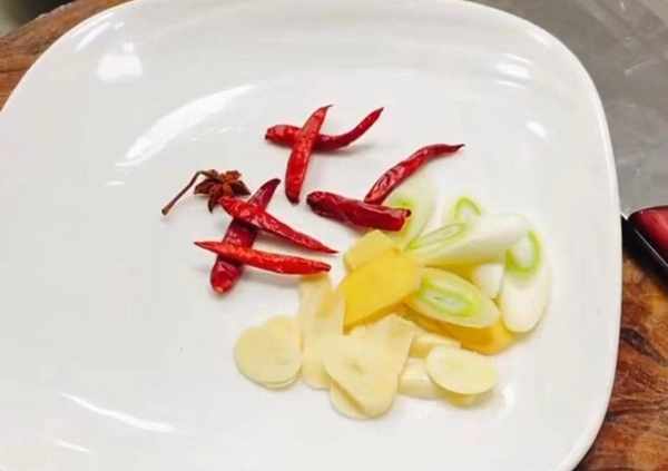 配料:蔥、薑、蒜、、八角、幹辣椒、料酒、生抽、醬油、雞粉、鹽、白糖、 13香