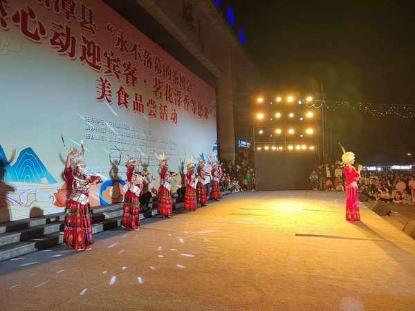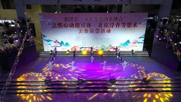 4月29日,貴州省湄潭縣舉行“永不落幕的茶博會”“烹燃心動迎賓客·茗花浮香等您來”美食品嘗活動文藝晚會,一場視覺、聽覺、味覺交融的視聽盛宴,在中國茶城廣場激情上演,吸引瞭廣大市民駐足觀看。