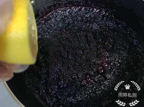 待桑葚果醬湯汁收得差不多時,檸檬一分為二切開,擠入檸檬汁到桑葚果醬中,這不僅可以增加桑葚果醬的風味,也是天然防腐劑,延長桑葚果醬的保存期。