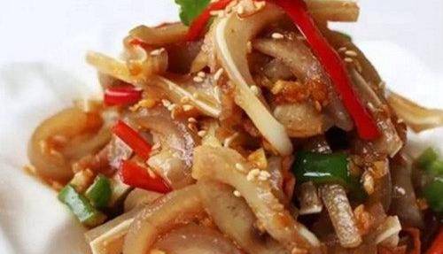 吃的時候,澆上少量生抽、香醋和辣椒油,撒上熟的白芝麻,拌勻即可。