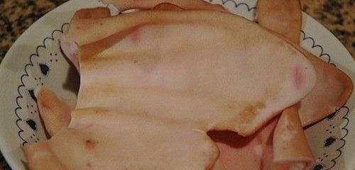 第二步:將豬耳朵清洗後,用刀背將兩面刮幹凈。