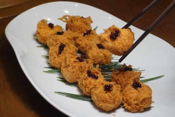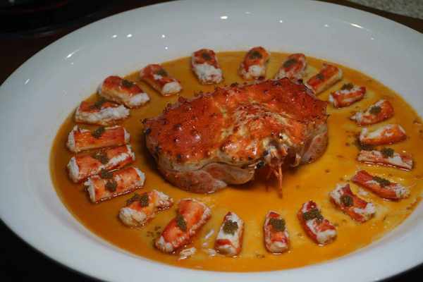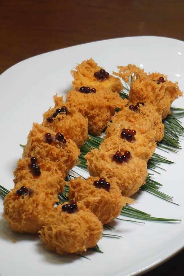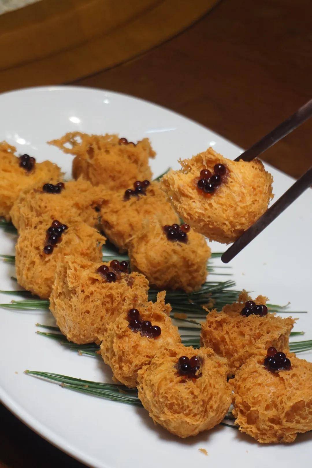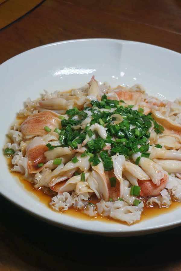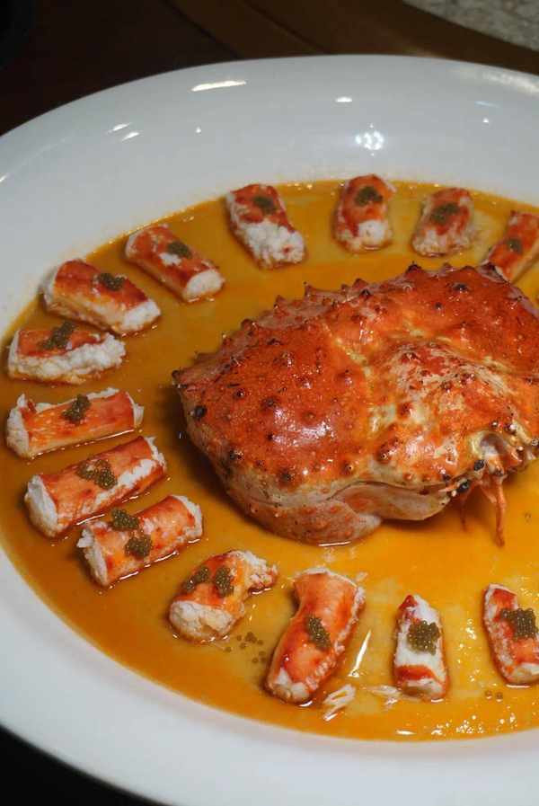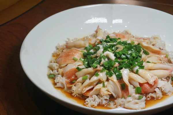 一蟹兩吃,前面帝王蟹身和海瓜子一起炒,已經是味蕾大大的刷新驚喜。蟹腳每一隻都去殼,和芙蓉蛋一起蒸制。蛋液蒸到恰好,嫩嫩滑滑,一勺子蛋羹一塊蟹腳肉,豎起大拇指來誇的好味道!