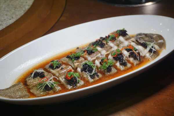 龍舌魚的肉質更加鮮嫩,在閩南海鮮裡大傢都很喜歡吃龍舌,像這麼大的龍舌魚就很難遇見。魚肉加上老菜脯的提香,入口是咸香鮮嫩的!
