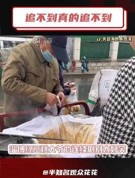 據瞭解,這位大爺經營的綠豆糕十分受歡迎,口感好、價格實惠,淄博當地的居民和遊客們都非常喜歡。但是,由於他的綠豆糕受到瞭太多人的喜愛,客流量也變得越來越大。