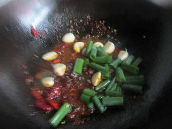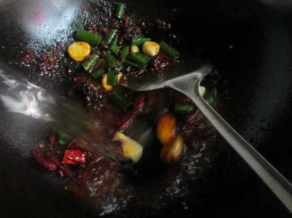 第二步:過裏放入花生油,入葱薑,大蒜,麻辣底料炒香。