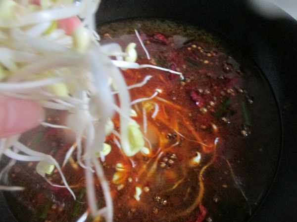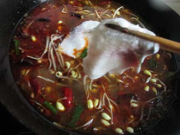 所用資料:草魚1條,蛋清1個,紅薯澱粉少許,黃豆芽適量,葱段,薑片,麻辣底料,大蒜,鹽少許,花生油,辣椒粉。