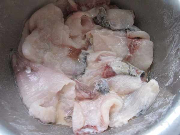 第一步:草魚一條2~3斤重,買魚的時候,讓賣魚的師傅給片好魚片,回家洗淨用少許料酒,蛋清和紅薯澱粉抓勻,醃漬大約10-20分鐘。這樣處理一下魚片滑嫩好吃,醃漬魚片一定要用紅薯粉,紅薯粉粘性大,魚片不易碎。