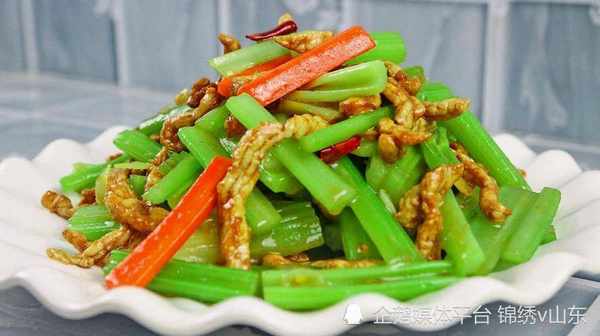 芹菜的膳食纖維含量高,而瘦肉絲則含有高蛋白質,兩者搭配起來,不僅口感清爽,而且適宜減脂人群食用。