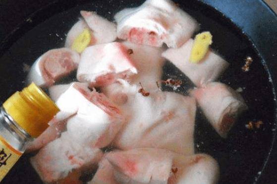 豬挑好後要清洗幹凈,尤其是豬毛,這樣吃起來才舒服。洗凈後,將豬蹄切成小塊,放入盆中,加點啤酒。豬蹄拌幾滴白醋,完全粘住白酒和啤酒,然後醃制半小時。過瞭時間再把豬蹄洗幹凈,然後下鍋,加足水,記得用冷水。放入鍋中,先用旺火煮沸,加水煮三分鐘左右。