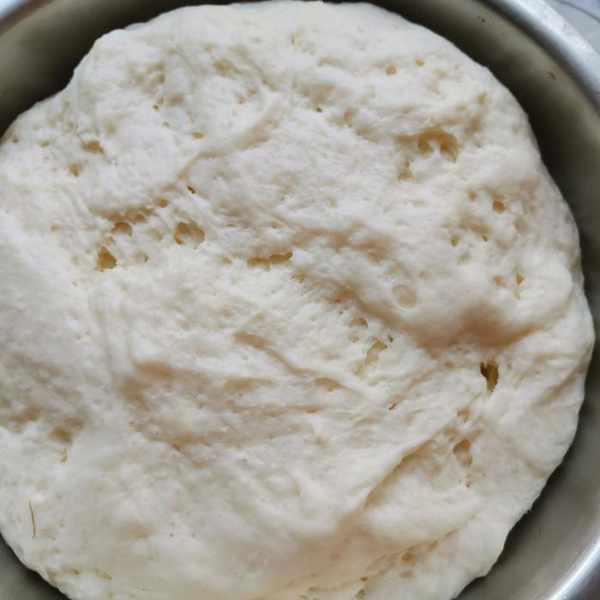 第一步:麵粉加入酵母粉和水和稱軟硬適中的麵團,靜置發酵成蜂窩狀。麵粉和水的比例大約是2:1的比例就可以。
