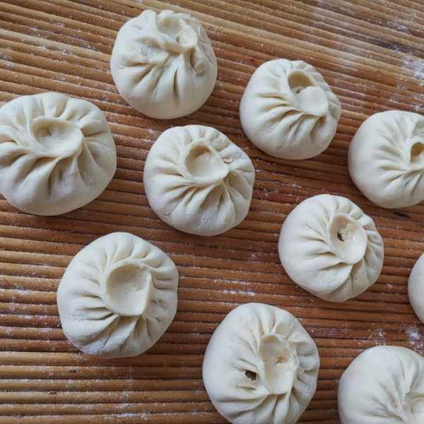 第六步:順著邊捏緊,全部包好以後,放到蓋簾上,蓋上濕布靜置二次發酵,發酵好之後,就可以準備上鍋蒸了,大火蒸25分鐘就可以出鍋,胖乎乎的包子,鮮美多汁特別好吃,這餡的包子很適合秋冬季節。