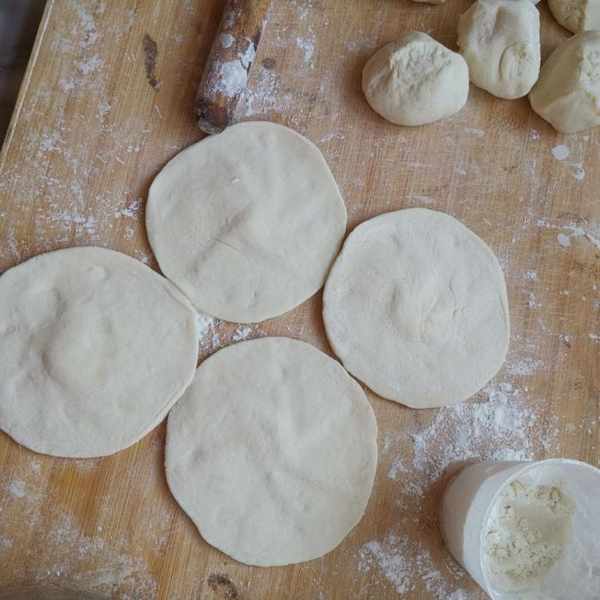 第四步:麵團發酵好以後,拿出揉光,揪成小劑子,擀成包子皮,包子皮不要太薄。