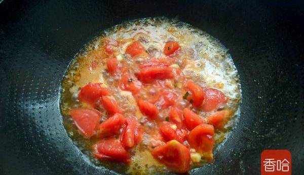 8.放入西紅柿炒勻。