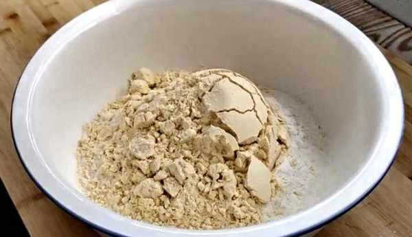 1:做玉米面餅和面時,要記得使用溫水和面,這樣才可以把酵母化開,如果全程使用涼水的話,酵母起不到發酵的做法,用熱水的話,會把面粉燙的沒勁道,把面粉攪拌成比較粘稠的面糊,攪拌到裡面沒有幹面粉和顆粒狀,蓋上蓋子發至2倍大。
