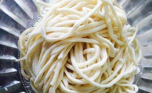 制作方法:首先我們先準備大約300克左右的面粉,然後把面粉加入到和面盆中之後,我們在面粉裡面加入少許的食用鹽,加入瞭適量的食用鹽,以後也是能夠更好的增加面條的筋性的,然後我們再準備一些涼水,把水慢慢的倒在面粉中邊倒入邊進行攪拌,直到攪拌成瞭絮狀的面粉,然後用揉成面團就可以瞭,在和面的時候也建議把面團和得稍微的硬一些。然後蓋上一層保鮮膜,醒上10分鐘左右的時間之後再把面團揉搓一下,然後再蓋上保鮮膜,醒上30分鐘左右的時間。