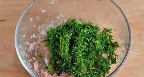 然後我們將茴香葉洗清潔,切碎,放入肉餡裡繼續攪拌均勻。