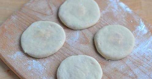 然後掏動身好的面團,切成等份的8塊,然後用搟面杖搟成中心稍薄的面皮。