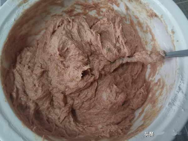 第二步:澱粉和水稀釋成為水澱粉,加入水澱粉順時針攪打上勁,水澱粉要每次一點一點地加,不要一次加入,然後再加入少許鹽攪拌均勻。