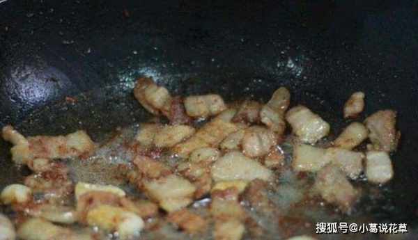 3、鍋燒熱後,先用薑片擦鍋,再倒入適量的食用油。油溫達到50%時,將切好的五花肉放入鍋中煎至兩面微黃,再加入蔥薑炒香。