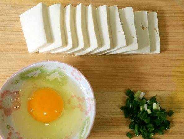 然後豆腐切塊待用,蒜剁蔥切碎,雞蛋打入碗中打入兩個,加少許鹽、蠔油、醬油拌勻待用,加入適量食用油.鍋燒熱,將豆腐放入鍋中。在中心慢慢煮,煮至兩面金黃。煎的時候不要翻動,要等一側變硬再翻動,以免豆腐腐爛。