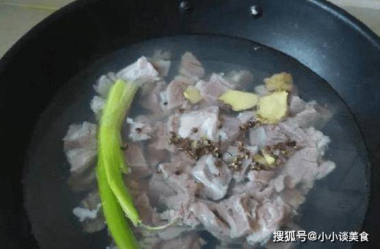 3、焯好的羊肉放入鍋中,加足量的水,加入切好的薑片、蔥花、胡椒粉和白芷,先大火煮熟,中小火燉兩個小時。蓋上鍋蓋,讓羊肉的腥味蒸發掉。