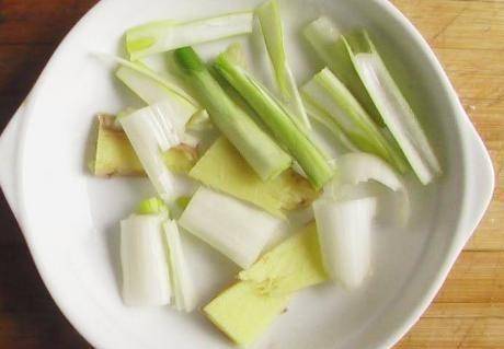 制作過程:第一步準備適量的發尾,去掉不能食用的部分,仔細沖洗幹凈,將發尾切成段,控幹水分,用薑切成小塊;