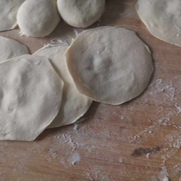 第五步:麵團拿出揉勻,揪成小劑子,擀成圓形的包子皮。肉餡包子不要把面劑子分割的過大,蒸的小一點會更好吃。