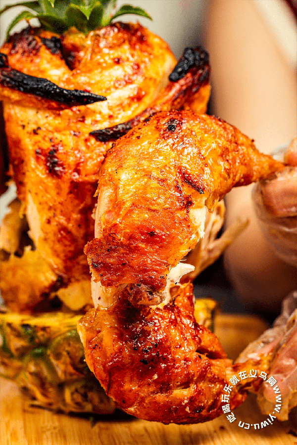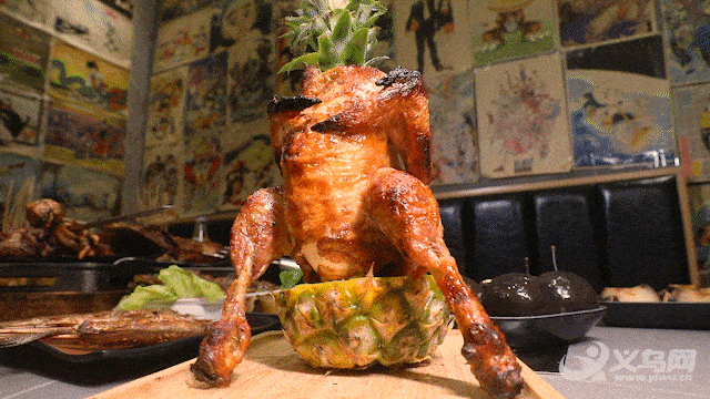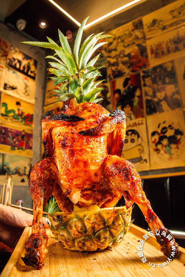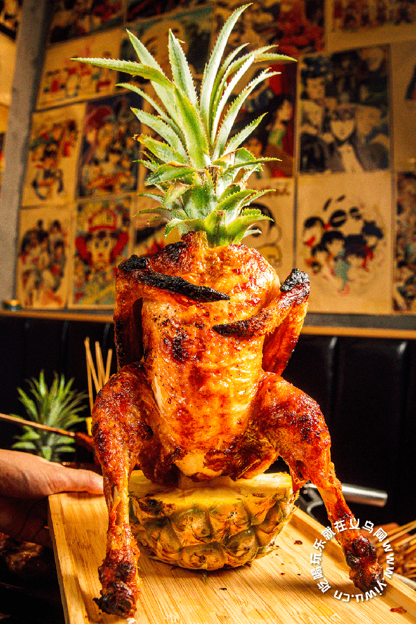 碳店新上的菠蘿霸王烤雞上桌也太霸氣,再為它加冕上菠蘿頭王冠,妥妥的拍照出圈~