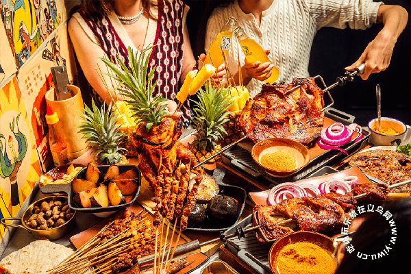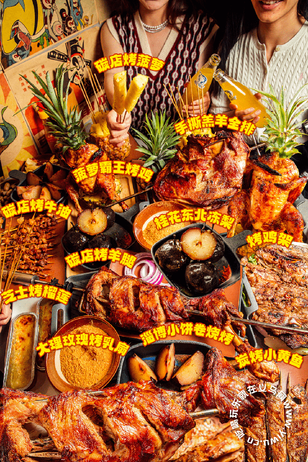 這不最近又弄回瞭菠蘿霸王烤雞、 淄博小餅卷燒烤 、雲南玫瑰烤乳扇、沈陽烤雞架、東北凍梨……