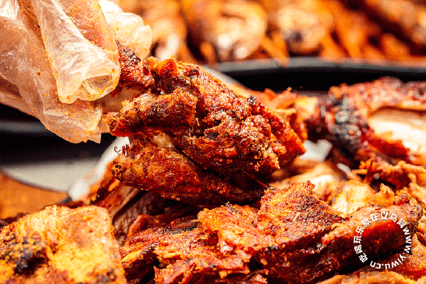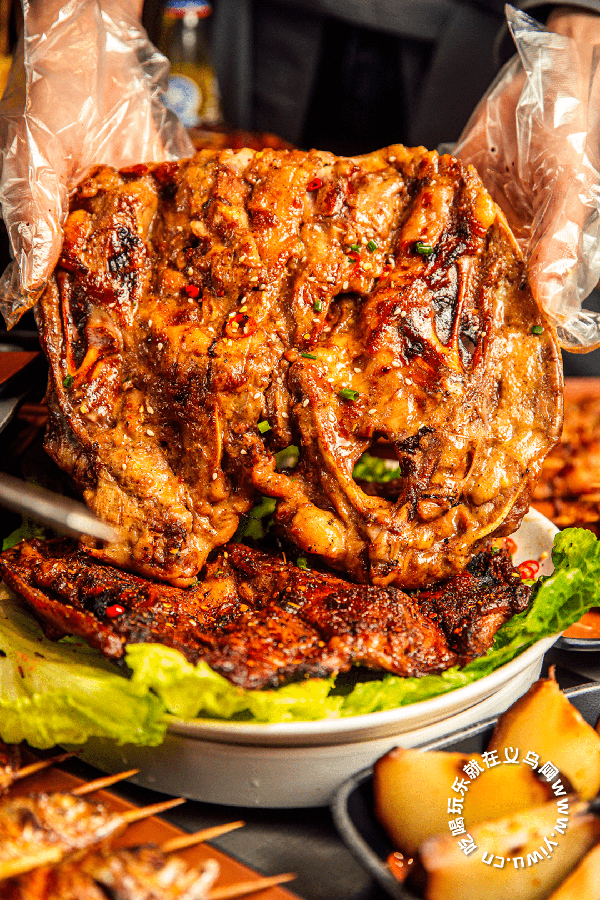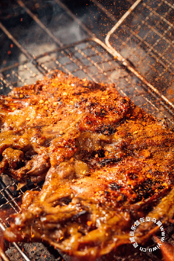 東北燒烤代表性產品——烤雞架也被搬運來義烏瞭,使用秘制東北醬與燒烤辣椒粉雙重烤制,油噗噗的上桌格外誘人~