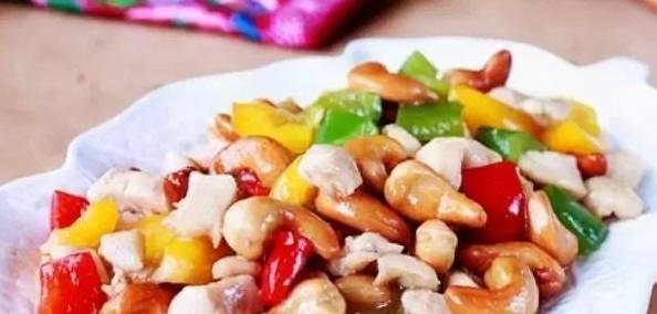 1、雞肉洗凈切成丁,用蛋清抓勻待用;腰果炸成金黃色待用;
