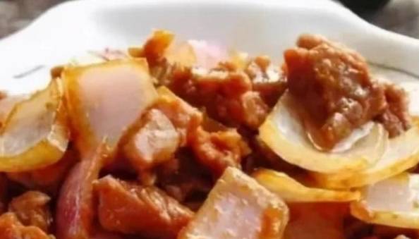 食材:牛肉;洋蔥;老薑;辣椒醬;老抽;料酒;芝麻油;淀粉(馬鈴薯);白糖