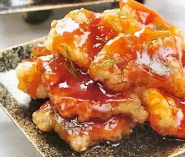 5、將調好的糖醋汁迅速淋在炸好的魚片上即可。