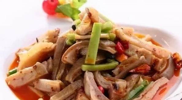5.準備大盆,加入芹菜,大蒜,香蔥,豬肚,洋蔥,油辣子,食鹽,香醋