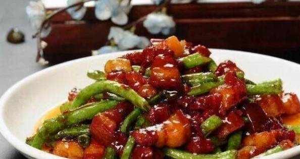 食材:五花肉、豆角、薑片、蒜末、蔥段、鹽、雞粉、白糖、南乳、料酒、生抽、老抽、食用油