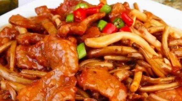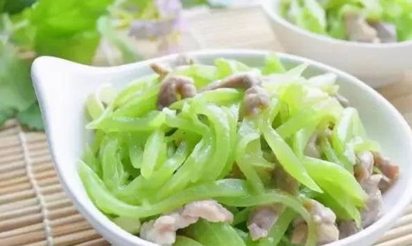 5、鍋內加植物油,燒熱後倒入肉絲,滑開,炒熟。