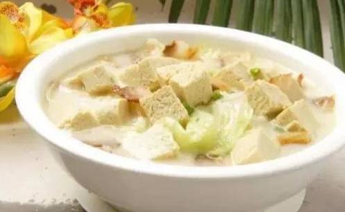 9.倒入大白菜大火翻炒加生抽、蠔油,白菜蔫瞭再加適量水,開鍋放凍豆腐。