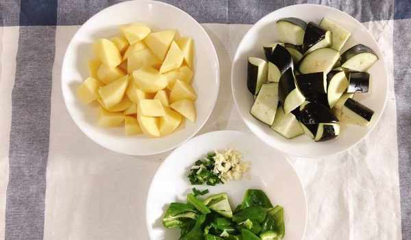1、茄子土豆還有青椒洗幹凈之後一定要將水分控幹,不然炸制的時候就會濺油。