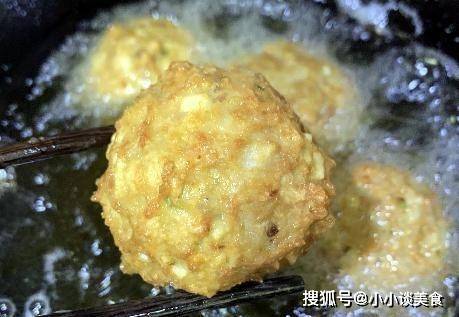 第三步是再次沖洗幹凈,直到它不容易在手上散開為止。鍋中加入油,待油溫升至60%時,用手將餡料揉成大團,放入鍋中開始煎制;